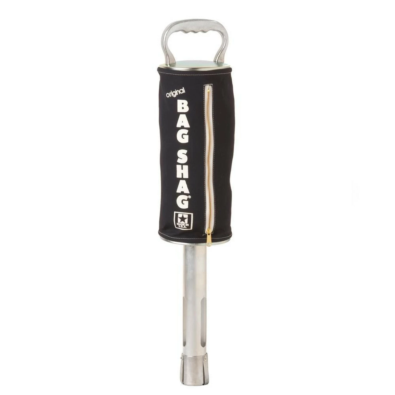 The ORIGINAL BAG SHAG is a hand held, golf ball retrieving device used to improve practice time. It also reduces back strain associated with repetitive bending to pick up golf balls. It holds 75 golf balls.